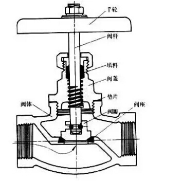 下螺紋閥桿截止閥:截止閥閥桿的螺紋在閥體內(nèi)。這種結(jié)構(gòu)閥桿螺紋與介質(zhì)直接接觸,易受侵蝕,并無法潤(rùn)滑。此種結(jié)構(gòu)用于小口徑和溫度不高的地方。